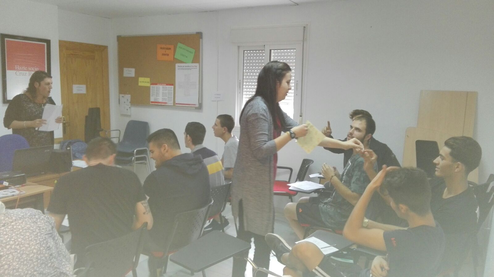 Nuestra profesora Alison celebrando la clausura del módulo de Inglés del curso de Operaciones de Restaurante-Bar impartido por la Cruz Roja.